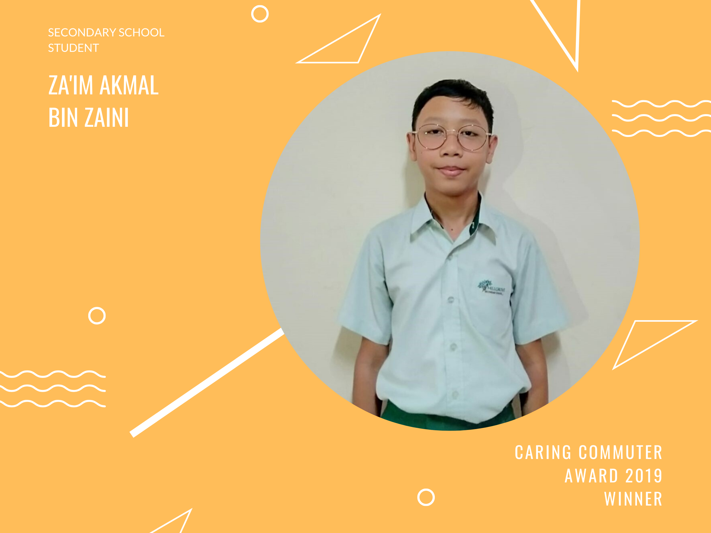 Meet Za'im Akmal Bin Zaini, Secondary School Student and Caring Commuter Award 2019 Winner
